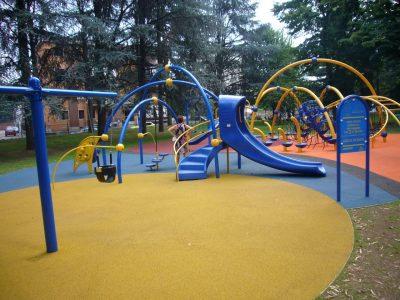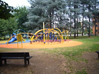 All’interno di una tranquilla area verde, originale struttura per bambini da 5 a 12 anni, per arrampicarsi in sicurezza, grazie anche alla pavimentazione antitrauma.